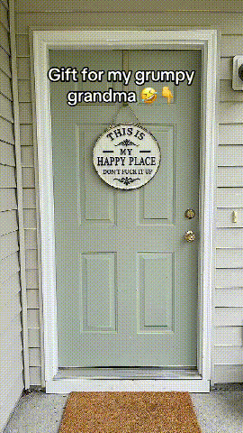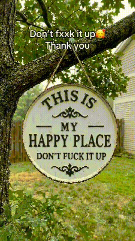 - Design: Round sign with “This Is My Happy Place Don’t F*ck It Up” quote 🌿